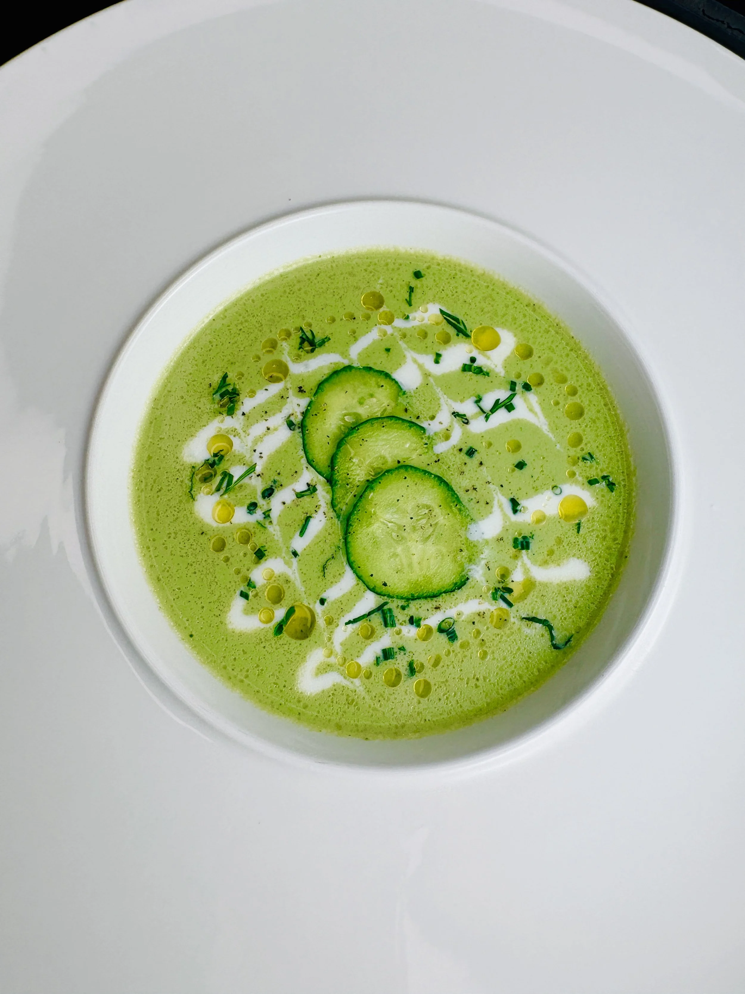 Chilled Cucumber Soup, Lemon, Dill, Basil, Greek Yogurt